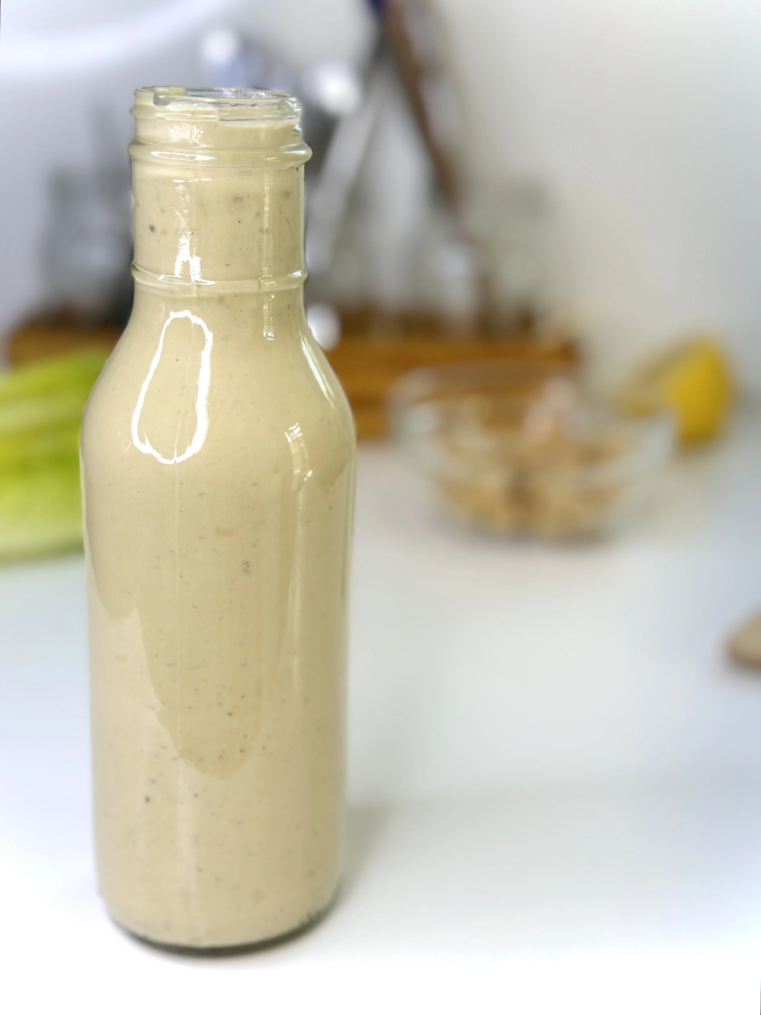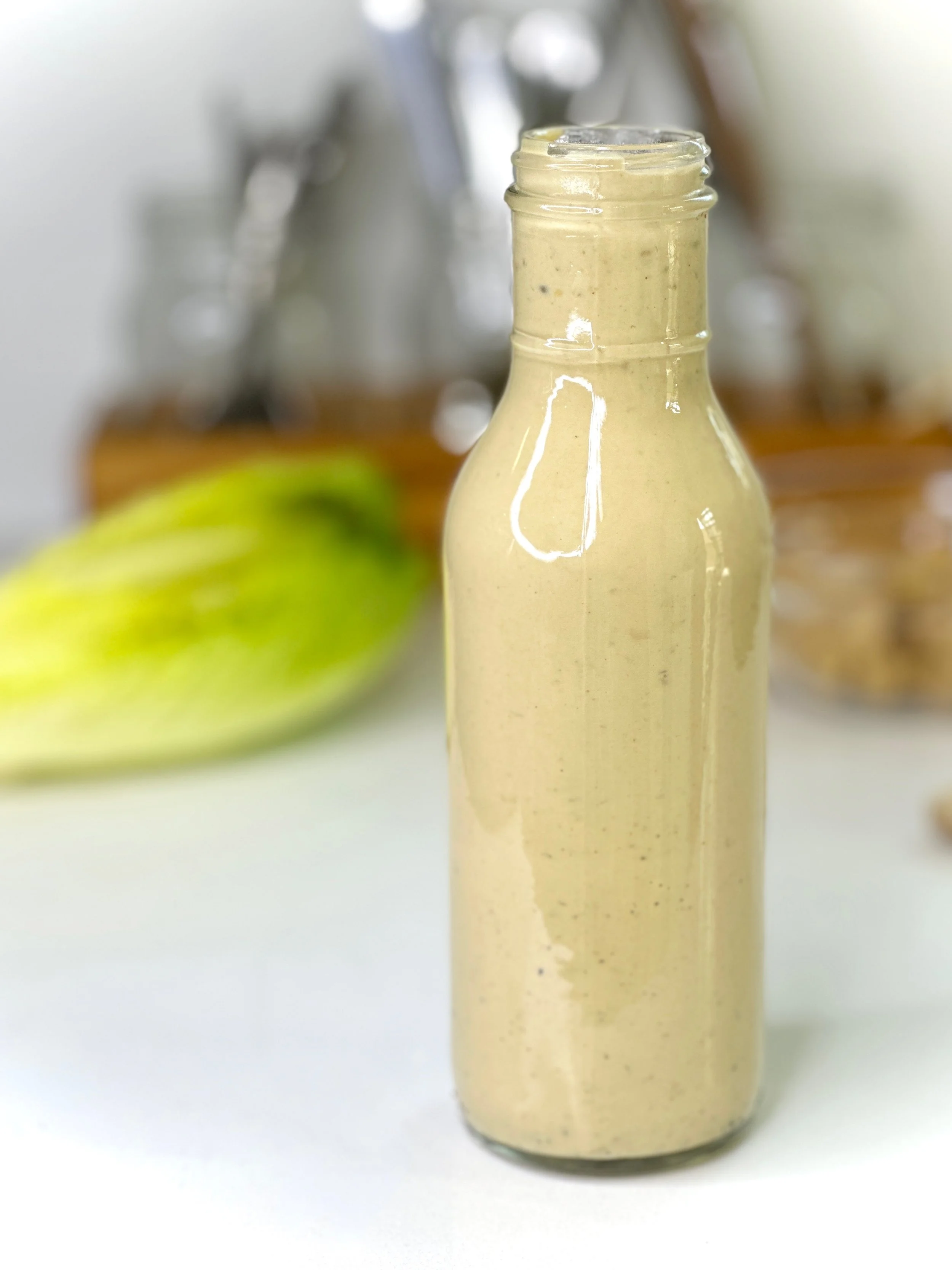 Tahini: Tahini serves as the creamy base of this dressing, lending it a rich and velvety texture. Made from ground sesame seeds, tahini is not only delicious but also packed with essential nutrients like calcium, iron and healthy fats. Its nutty flavor adds depth to the dressing, making it a standout ingredient.