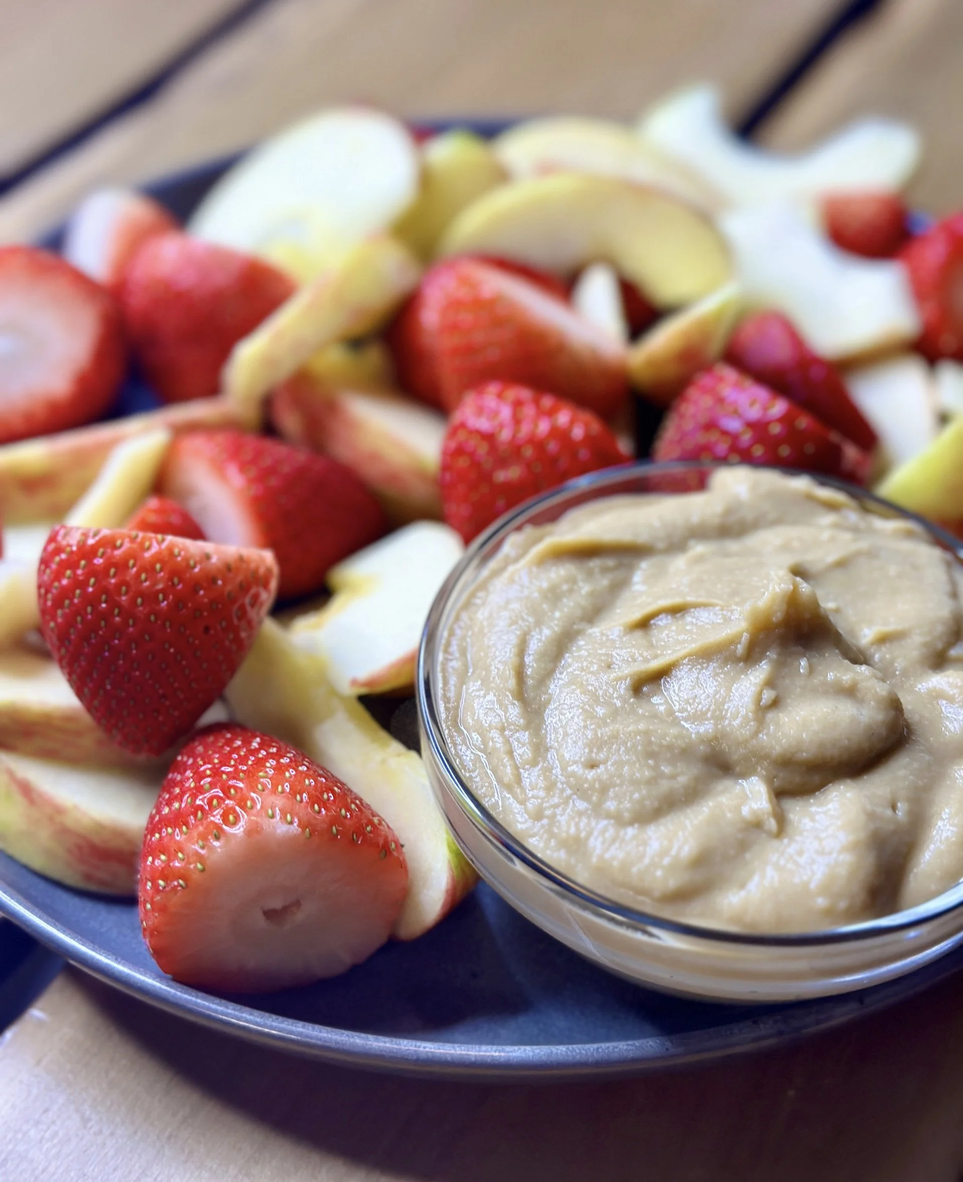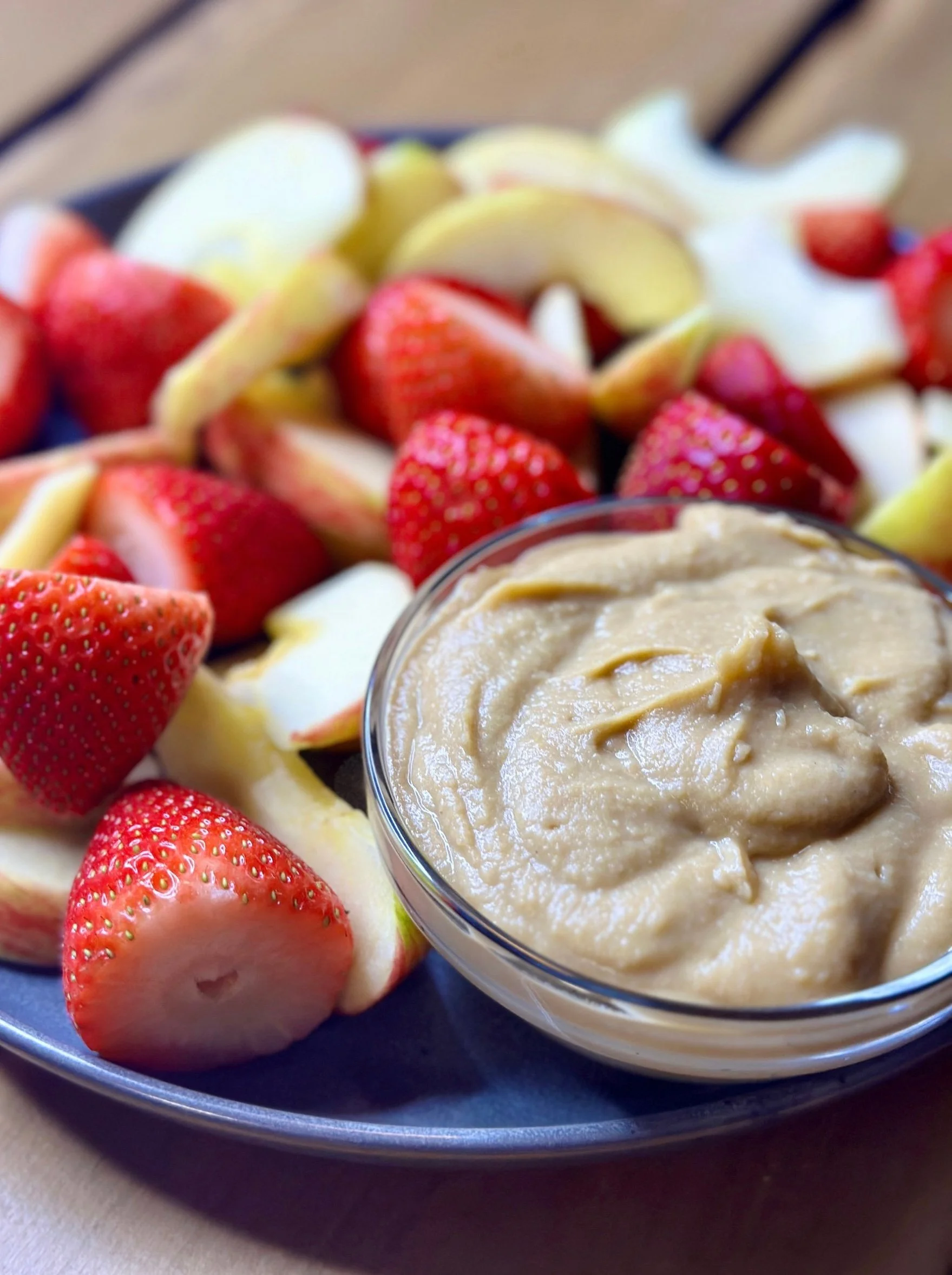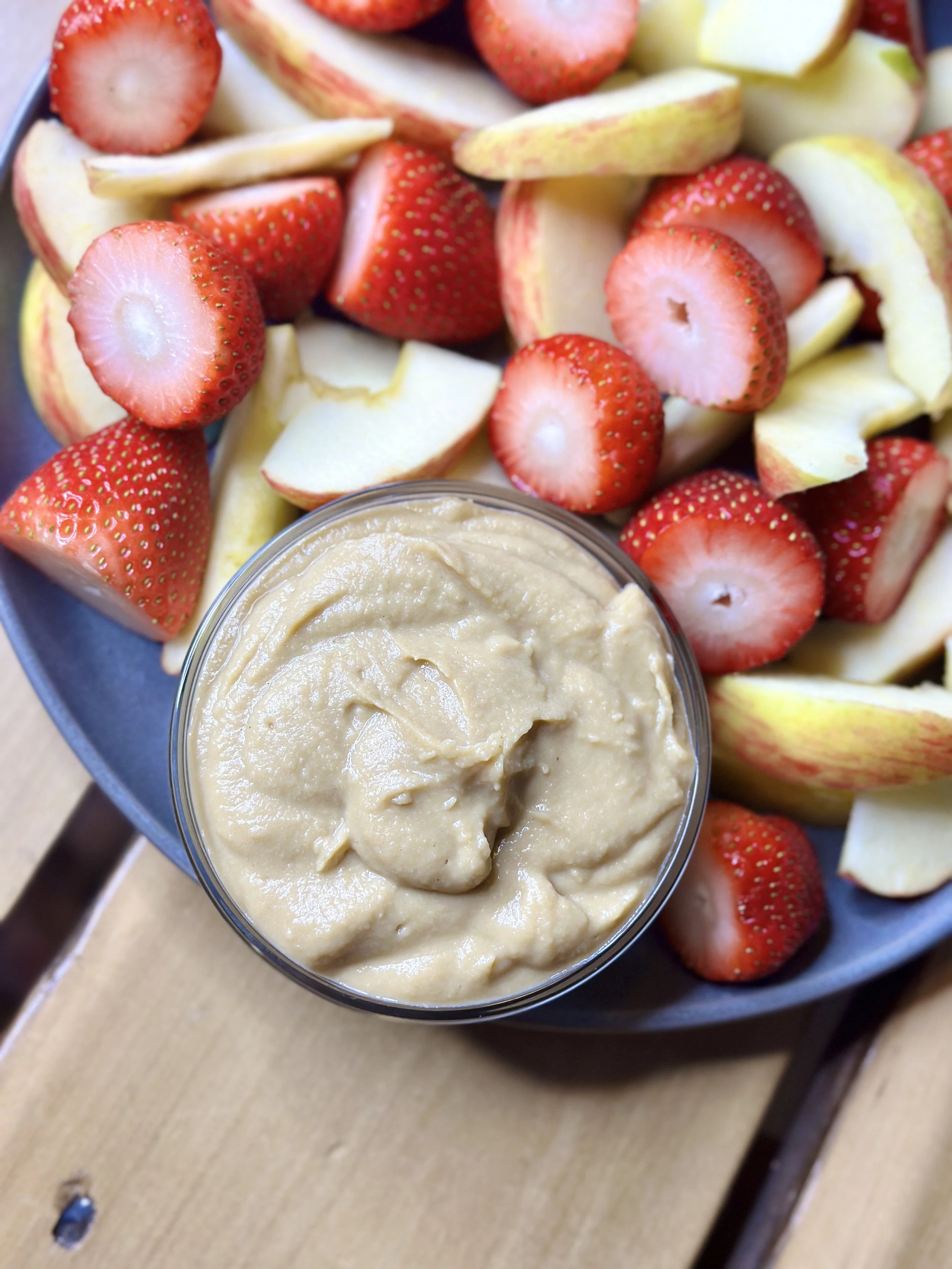 Plant Milk: Typical, savory hummus recipes use water as the liquid component, but because we’re making a dessert hummus, dairy-free milk works well in this and also makes your dip even more creamy! Choose your favorite type, such as almond, soy or oat milk.